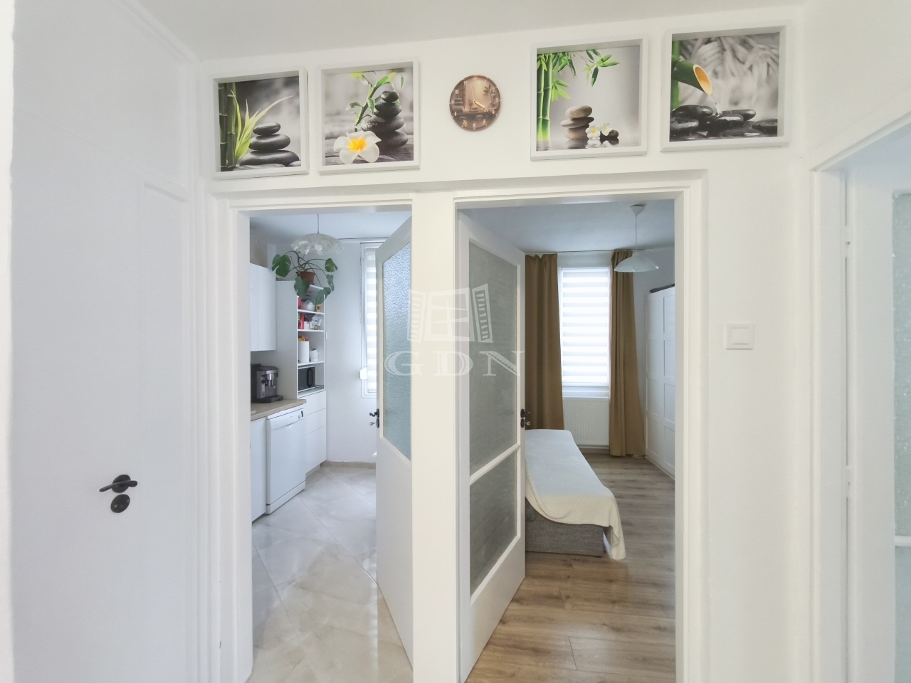 A lakás praktikus elrendezésű: három szoba biztosít kényelmes életteret, emellett külön konyha, spejz, fürdőszoba és külön toalett is kialakításra került -utóbbi a mindennapi használatot kifejezetten komfortossá teszi.