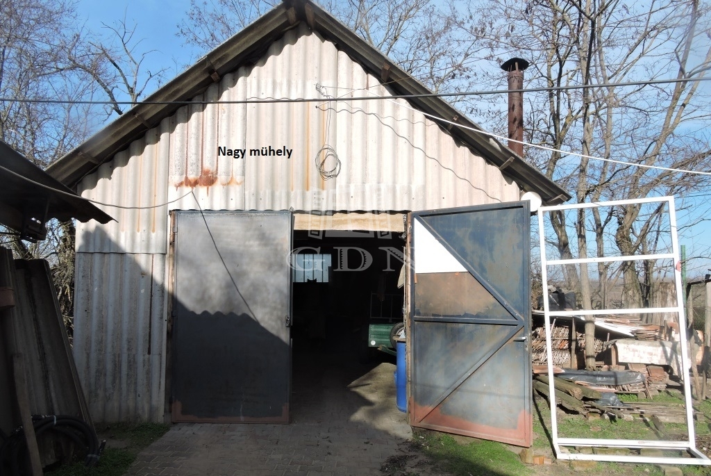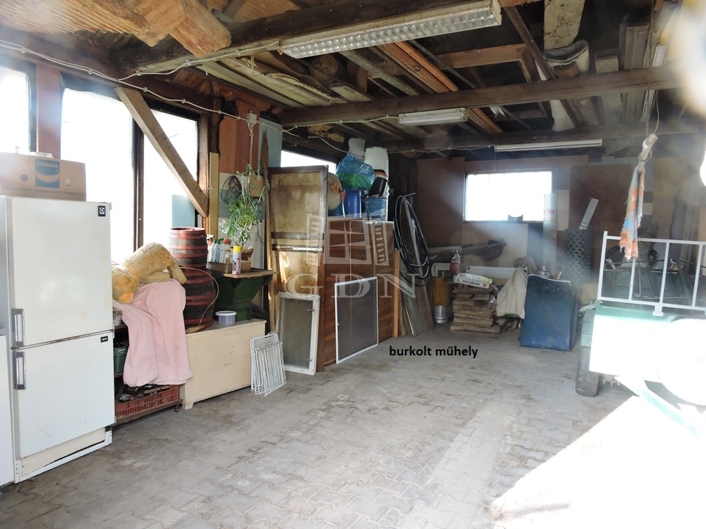 Két autó beállására alkalmas, burkolt garázs ami műhelyként funkcionált.