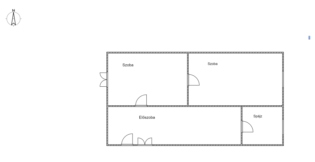 Főépület: 60 cm vastag vályogból épített, 72 nm, előszoba-spejz-két szoba, alatta egy zöldség tároló boros pince, kb 20 nm.