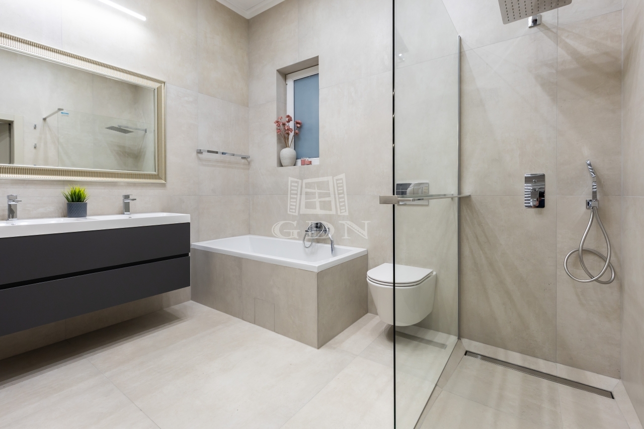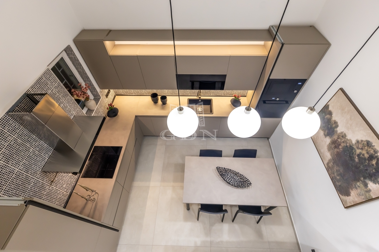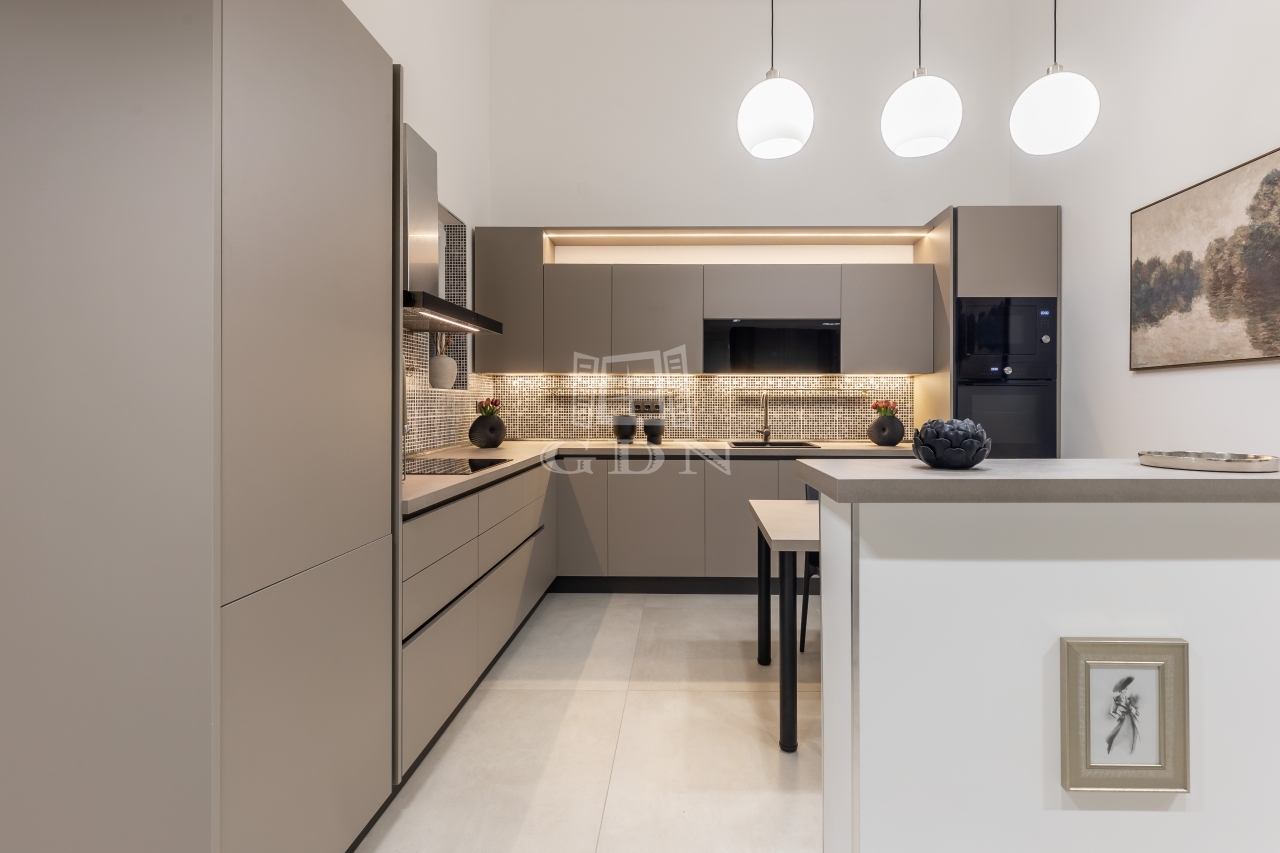 A modern, gépesített konyha egyedi, prémium minőségű olasz bútorokkal készült, emellett a lakásban több beépített szekrény is helyet kapott, így a tárolás kényelmesen megoldott. A komfortérzetet tovább növeli a klímaberendezés, valamint a falba süllyesztett széf.