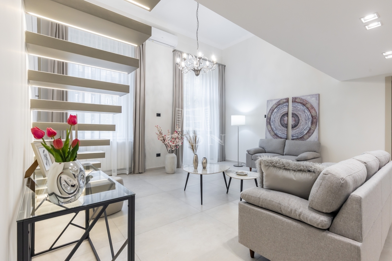 VI. kerületben, a Teréz körút egyik patinás, liftes társasházában kínálunk eladásra egy 106 m²-es, teljes körűen felújított, bútorozott, erkélyes lakást.