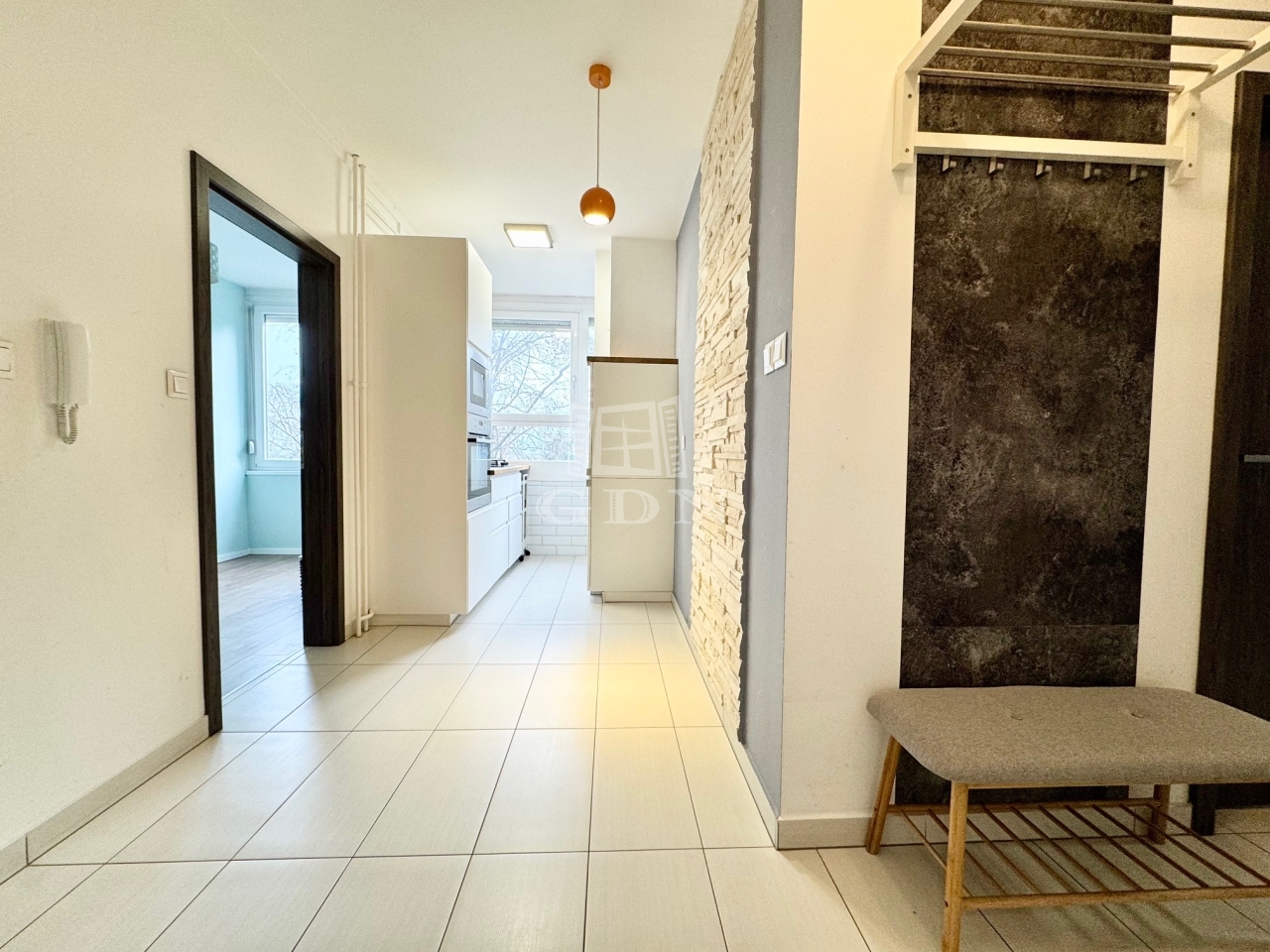 A lakásban a felújítás során: új külső- és belső nyílászárók, vízvezeték, burkolatok, beépített gépek, illetve praktikus és sok tárolási lehetőséget biztosító bútorok kerültek kialakításra.