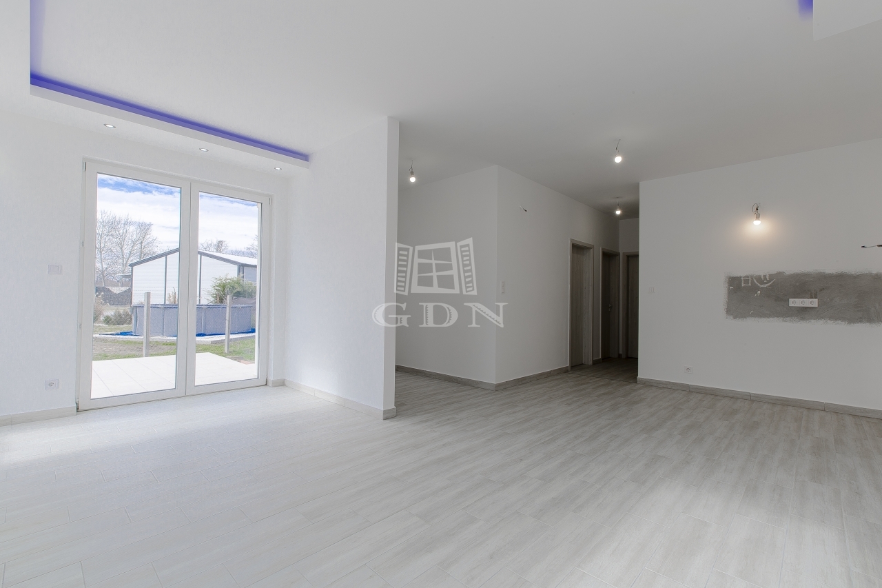 Megvételre kínálok Pest vármegyei Bag település, csendes de mégis frekventált részén, 286 nm-es telek részen, déli fekvésű, nettó 76 nm-es, bruttó 84 nm-es, 2 szobás + amerikai konyhás nappalival rendelkező, új építésű, rendkívül világos ikerház felet.