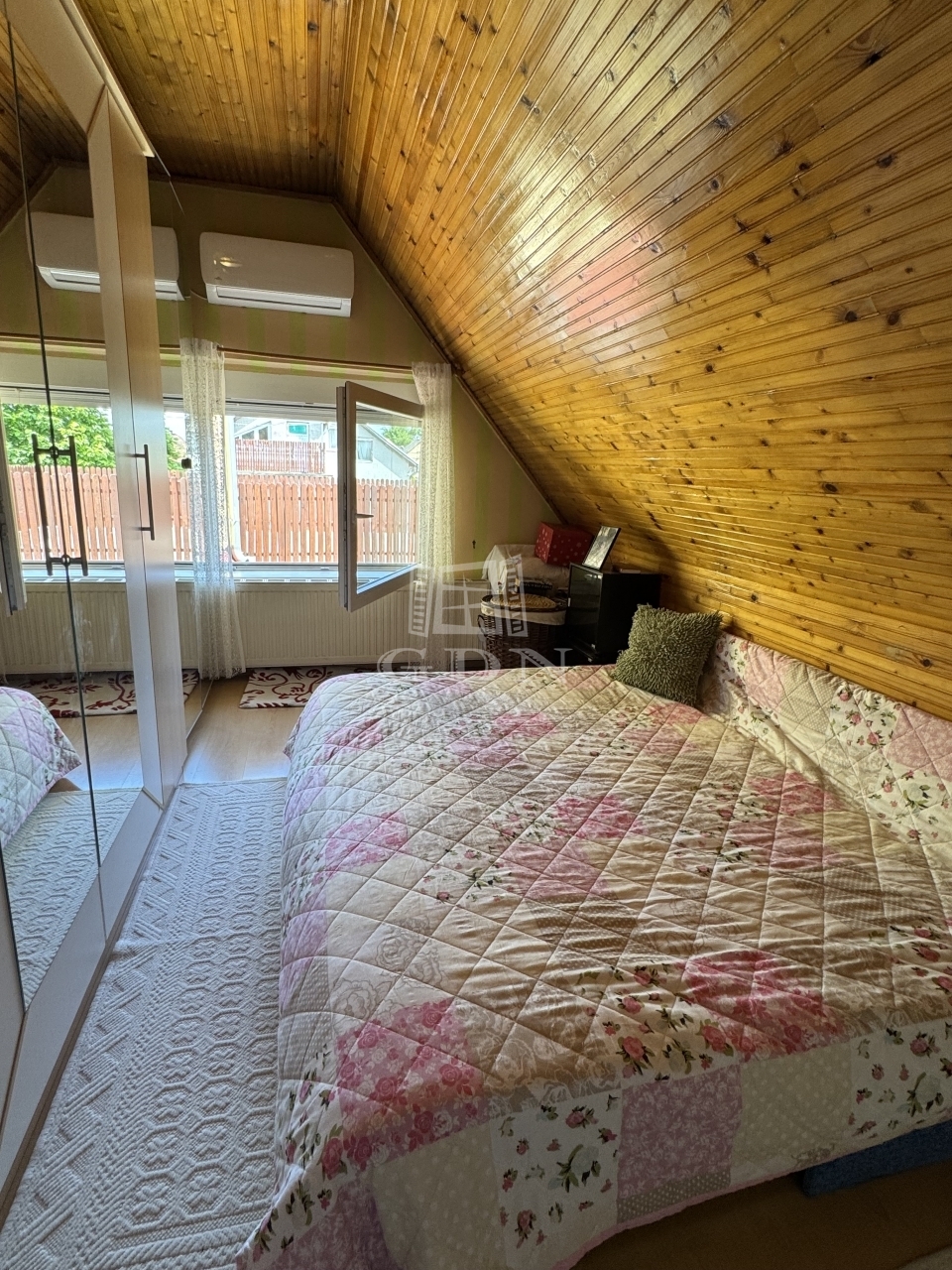 A gyönyörűen gondozott, parkosított 587 nm-es kertben, ami kiváló helyszín a kikapcsolódásra és családi összejövetelekre, 2 db teljesen külön bejáratú ház található.