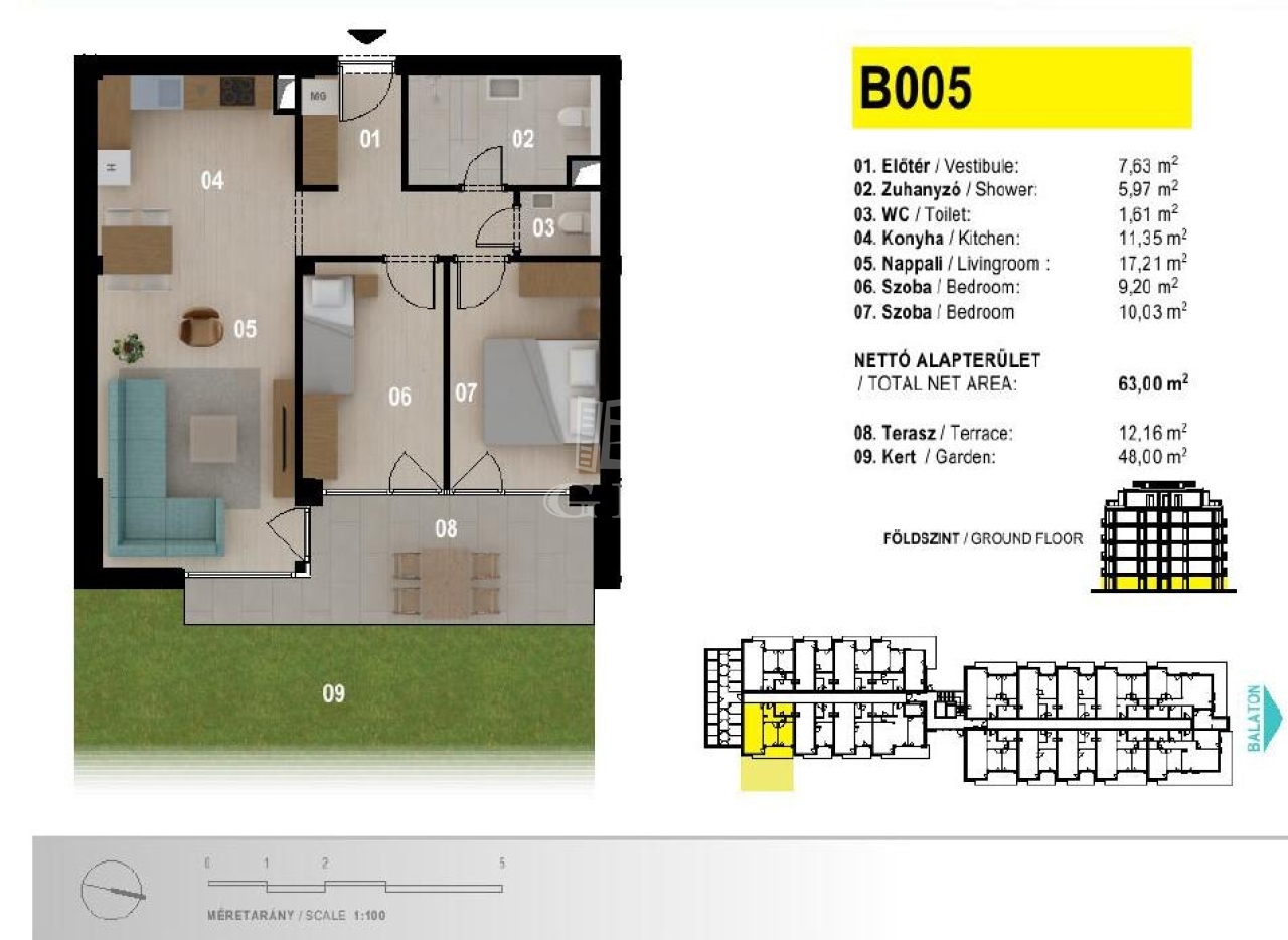 | 63 m2Alapterület | 3 Szoba |