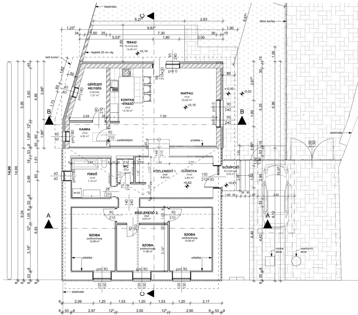 - gépészeti helyiség + kamra