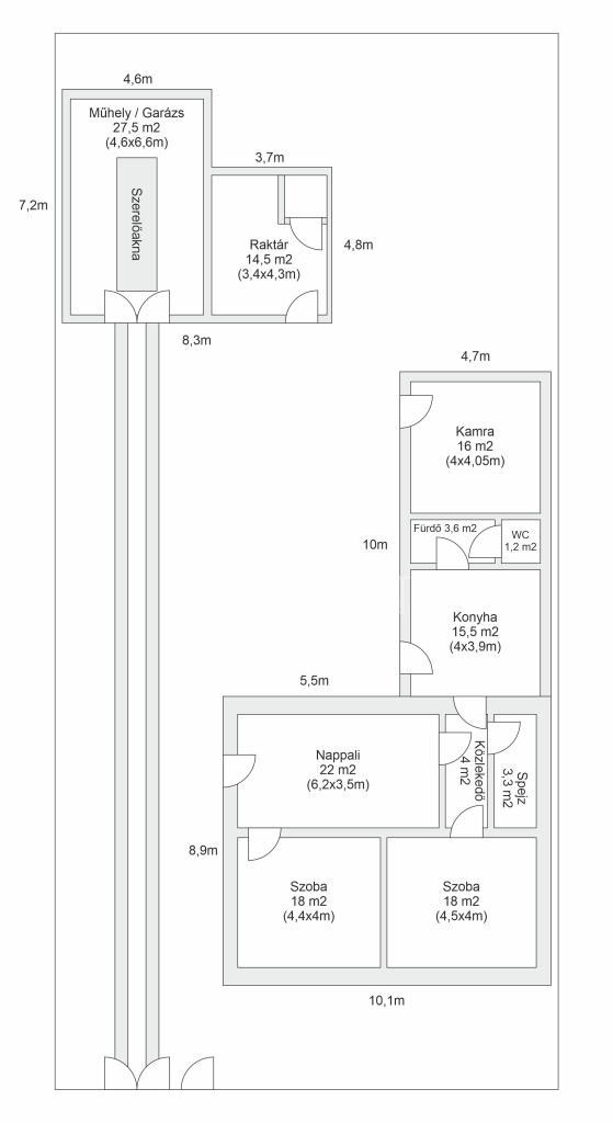 A kertben szerelőaknás garázs, nyári konyha gáztűzhellyel, fásszín, füstölő, állattartásra alkalmas épületek lettek kialakítva.