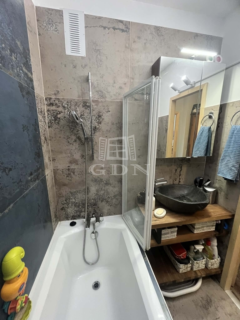 A lakásban két szoba található, melyek közül az egyik ablakából a ház mögötti park nyugodt látványa tárul elénk. A parkban játszótér is található, így ideális választás családosok számára is.