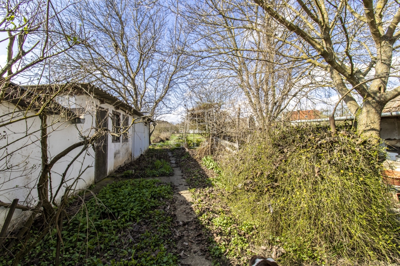A kert gazdálkodásra alkalmas, sok tárolóval és fúrt kúttal rendelkezik.