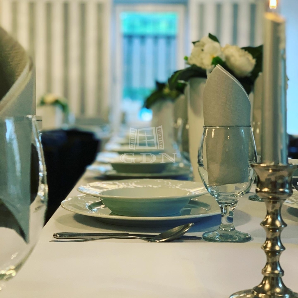 Földszinten recepció, egy elegáns étterem és bár, teljes felszereltségű konyha, vendég mosdók, dolgozói szociális helység, raktárak találhatóak.