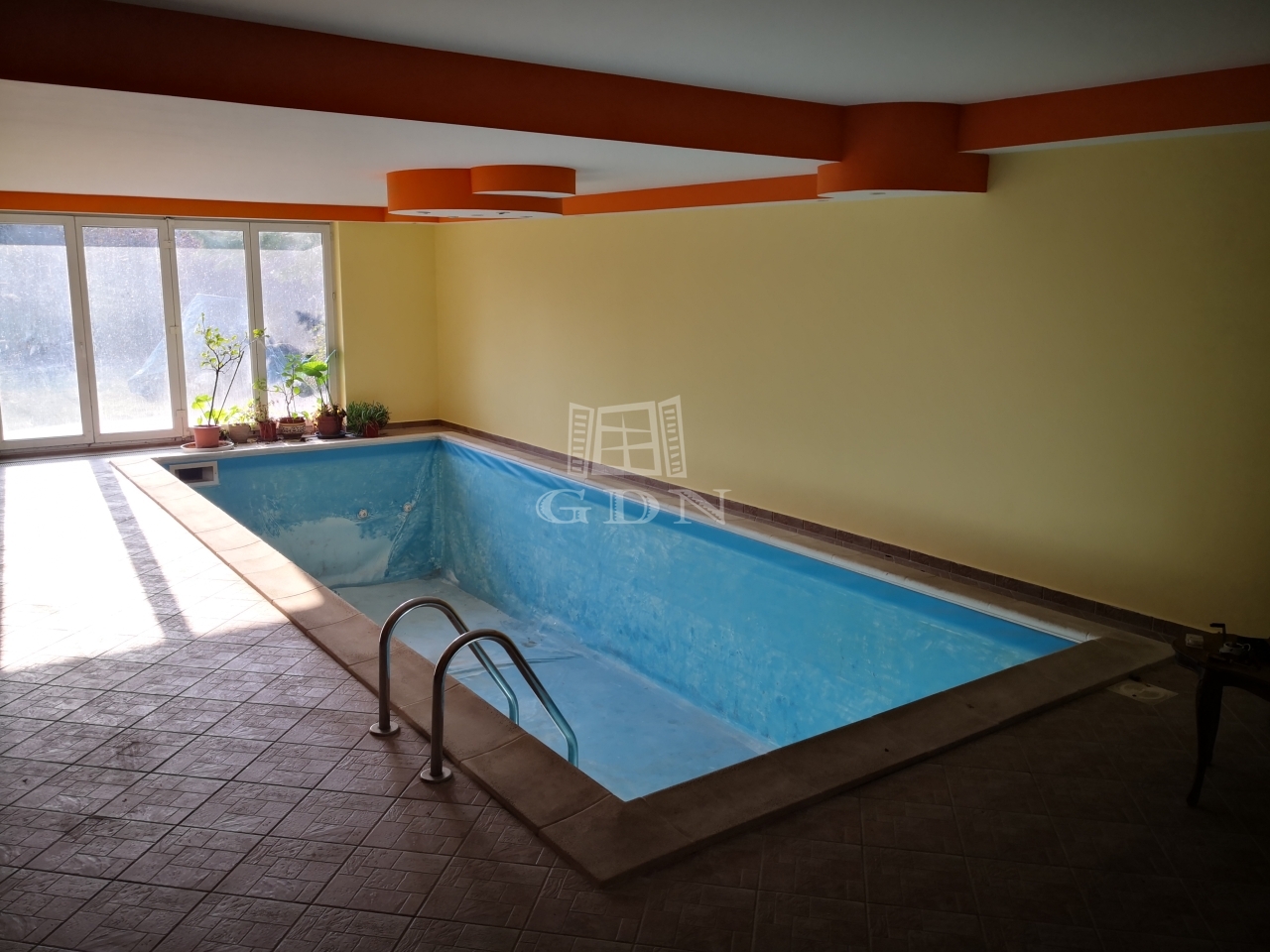 A pinceszinten kapott helyet a kétállásos garázs, a kazánház, a tárolók és a kamra. Innen nyílik az ellenáramoltatóval ellátott, fedett uszoda, a szauna és a borospince is. A ház fűtését és a meleg vizet hőszivattyú biztosítja, de alternatív lehetőségként van vegyes tüzelésű kazán, gáz-cirkó rendszer radiátorral és a nappaliban kandalló, ami nem csak hangulatossá teszi ezt a szintet, de képes az egész ház fűtésére is. Ezen kívül 36 db napelem biztosítja az áramellátást, amely a 200 nm-es műhely tetején helyezkedik el.