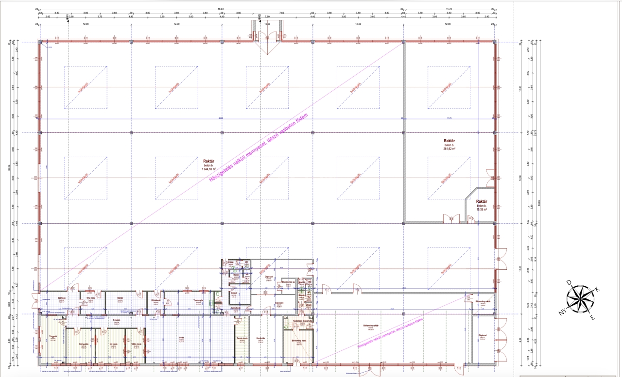 A raktár jelentős része fűtetlen, azonban egy kisebb, ~ 250 m2-nyi csomagoló rész klímaberendezéssel fűthető vagy akár hűthető.