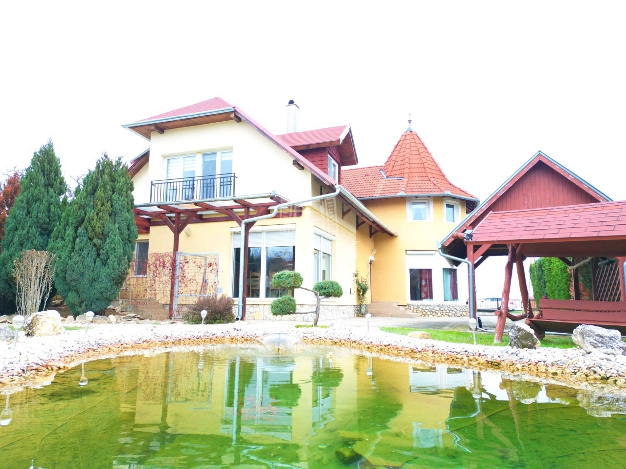 Az ingatlanhoz tartozik egy melléképület kerti eszközök tárolására, valamint egy pavilon is. A gondozott kertben egy szép kerti tó és egy saját erdőrész található, amely panorámás kilátást nyújt a környező tájra és Hévízre.