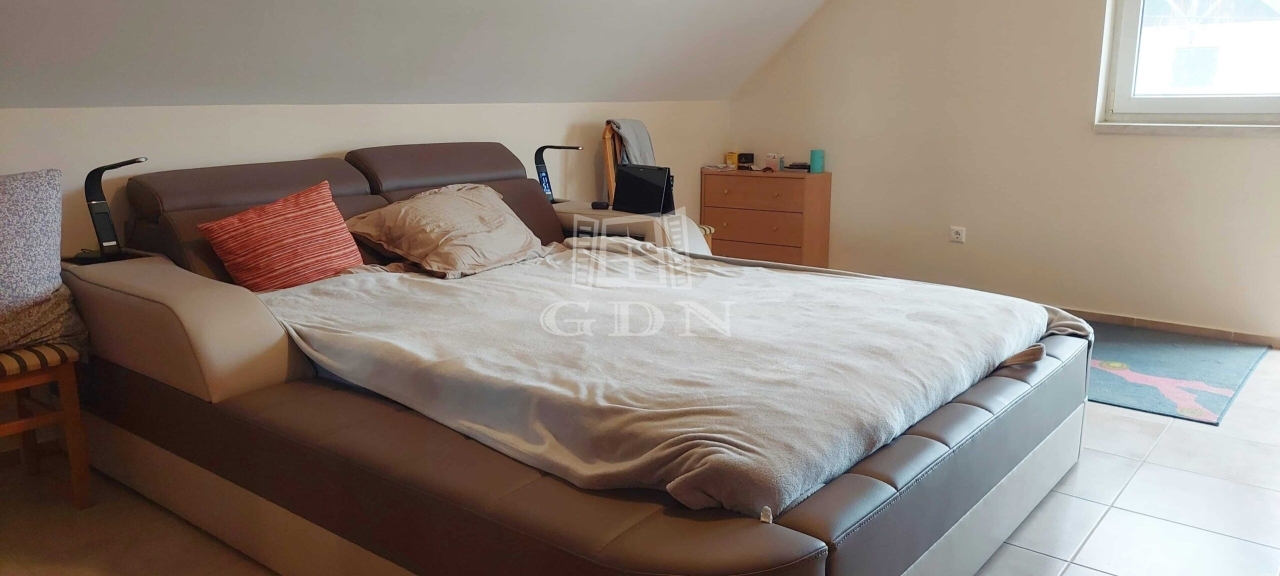Az emeleten előtér, nappali, két hálószoba, erkély, konyha-étkező, két fürdőszoba, tárolóhelyiség és egy fitneszterem kapott helyet.
