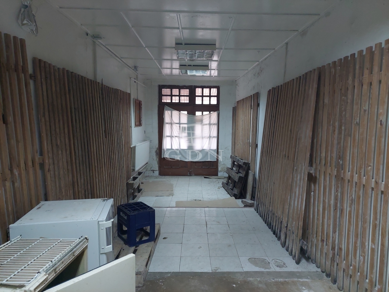 A telek saroktelek ezért két utcára nyílik, két utcáról is be lehet menni az épületbe. A főépület belül két teljesen elválasztott egységből áll: az irodai épületrész 55nm és az üzlethelyiség raktárral 300nm. Az irodai épületrész alatt 8nm alapterületen pince található. Az üzlethelyiség és raktár épületrész korábban élelmiszer előállító üzem volt, belső felújításra szorul. Mindkét épületrész a külön megközelíthetőség miatt önállóan alkalmas a bérbeadásra.