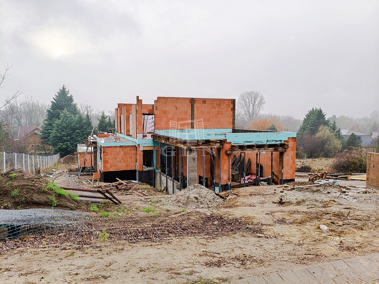 Veresegyház, Hegyek városrész csendes, kertvárosias részén, cca. 650 nm-es telek területtel, Új építésű, bruttó 176 nm-es, 5 szobás (nappali + 4 hálószoba, külön konyha, étkező), egy szintes, vasbeton födémes, hőszivattyús (levegő - vízes) padló fűtéssel, Dél - Nyugati fekvésű, műanyag thermo dió színű (3 rétegű, 7 légkamrás) nyílászárós, szigetelt (15 cm dryvit), új építésű, a másik féltől teljesen elszaparált, dupla garázzsal elválasztott, a másik lakóegységgel egy telken lévő, de külön, elválasztott úton megközelíthető családi ház (hátsó) eladó.