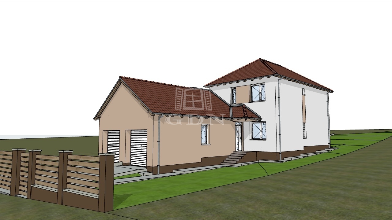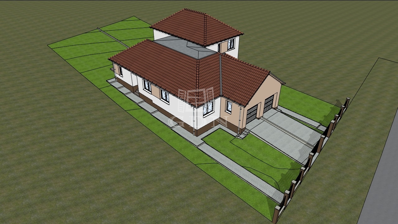 Jelen ikerház fél nettó 114 nm hasznos alapterületű egy szintes épület + 20 nm-es fedett garázs, valamint 19 nm-es terasz.