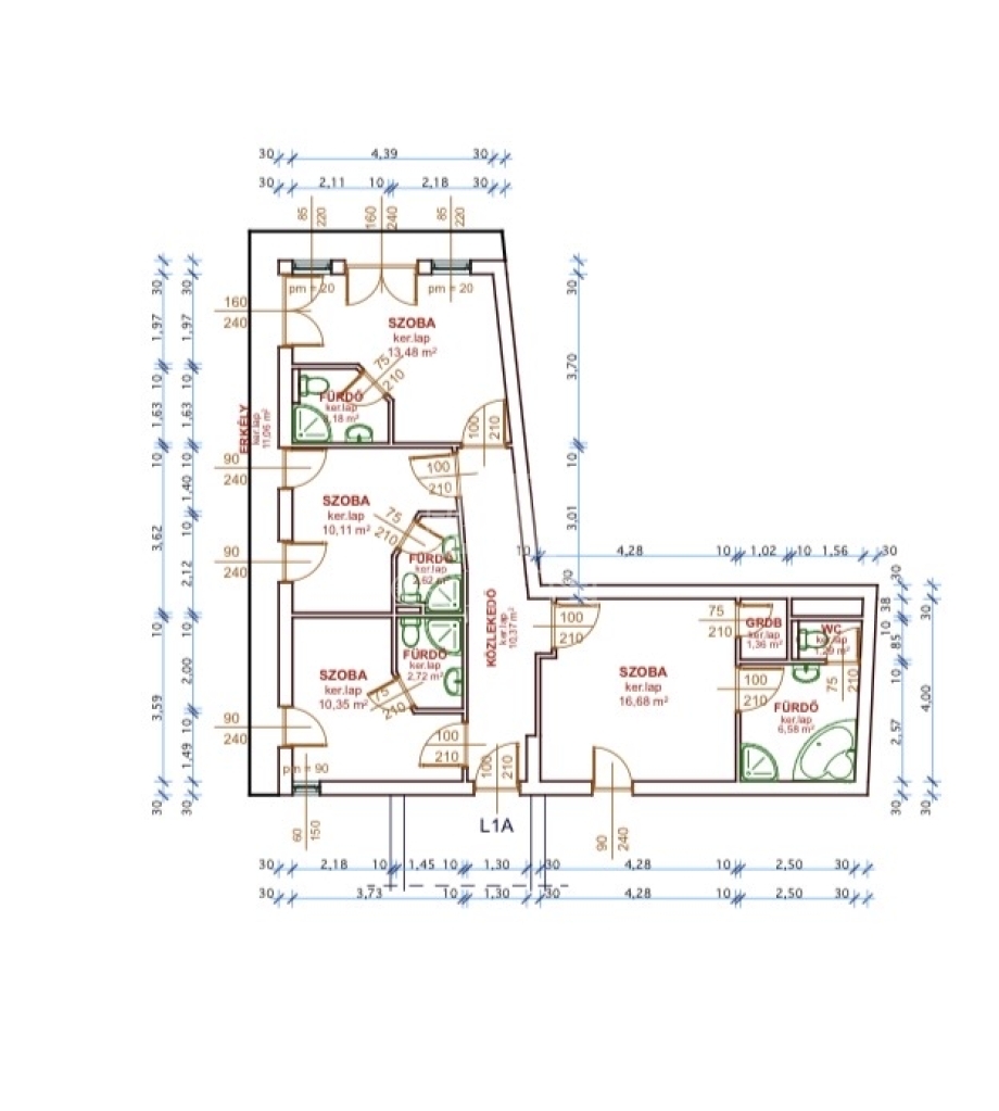 A 2008-ban épült, többcélú épületben található lakás praktikus és sokoldalú elrendezésű: négy külön bejáratú szobával rendelkezik, amelyek mindegyike saját fürdőszobával, WC-vel és klímaberendezéssel felszerelt. Ez a kialakítás rendkívül ritka, és számos felhasználási lehetőséget kínál.