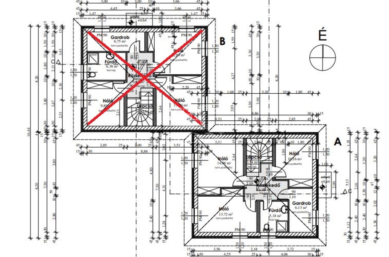 A két lakás CSAK A SARKÁNÁL KAPCSOLÓDIK, KÖZÖS FAL NÉLKÜL, így teljesen különálló otthonérzetet biztosítanak.
