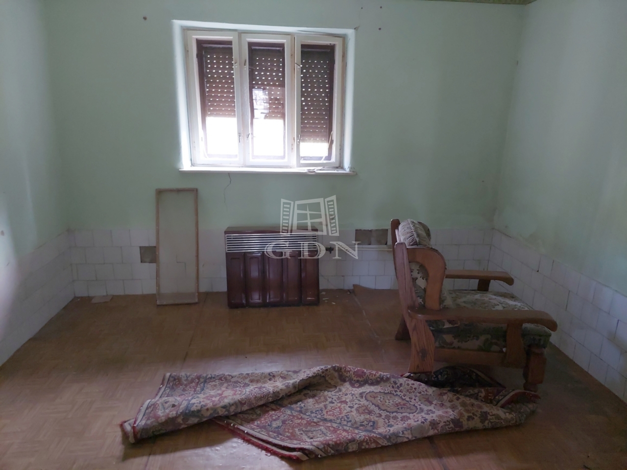 Az 50-es években épült felújítandó kertes ház 50cm-es vegyes (vályog+tégla) falazattal készült. A tetőszerkezete kombinált tető, cserépfedéssel ellátva. A ház fűtése gázkonvektorral és cserépkályhával van megoldva. Az épületbe villany, víz, gáz és csatorna be van kötve, de ha a gáz használatára szükség van, akkor a gázórát vissza kell köttetni.