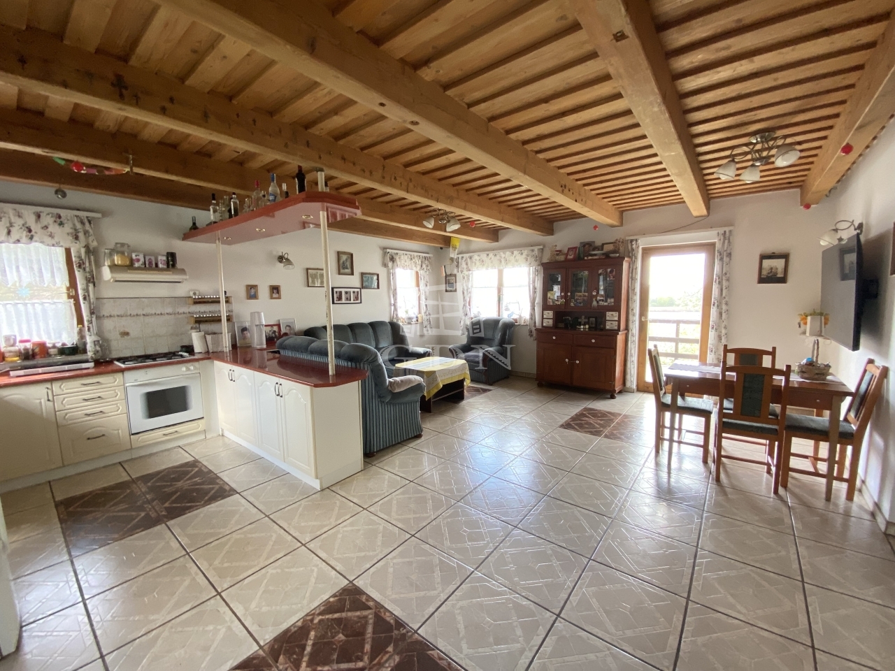 Amerikai konyhás, étkezős nappali közvetlen teraszkapcsolattal