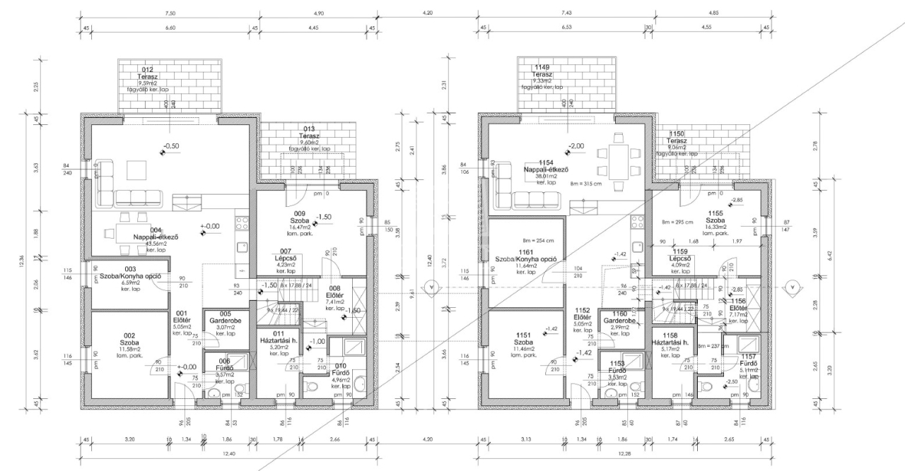 Belső kialakításnál a konyha elhelyezése és a hálószobák számának változtatása opcionális.