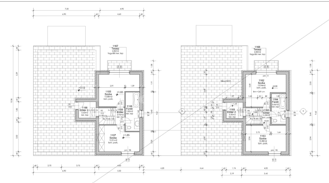 A többi terasz területe közel 20 m2.