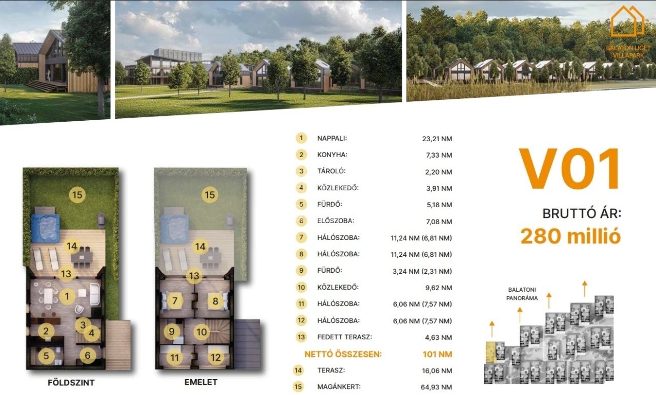 min. 64 m² magánkert.