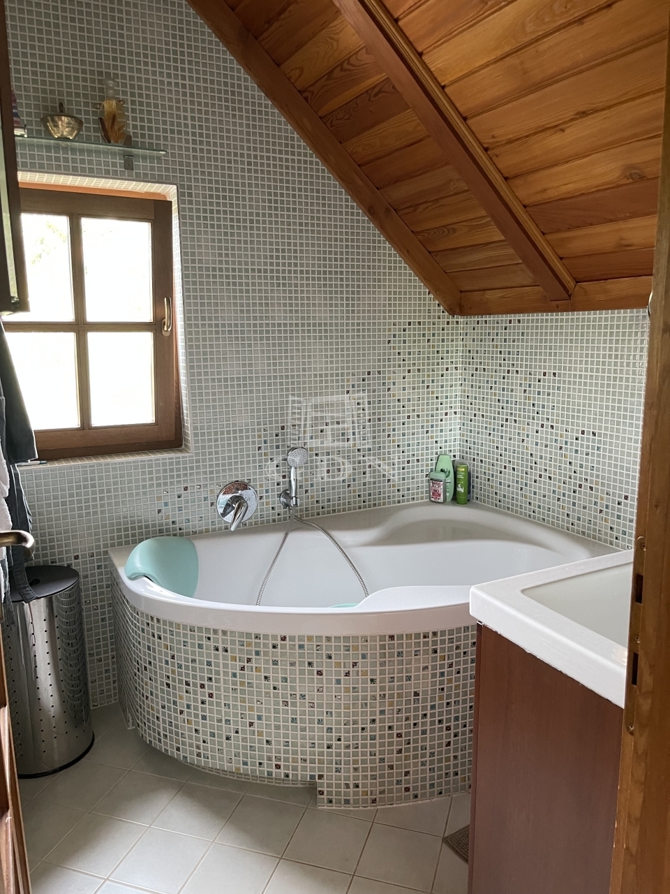 Kiegészítők: cserépkályha, infraszauna, félköríves terasz (25 m²), melynek burkolata felújításra szorul, így lehetőséget biztosítva a további egyéni igények kialakítására.