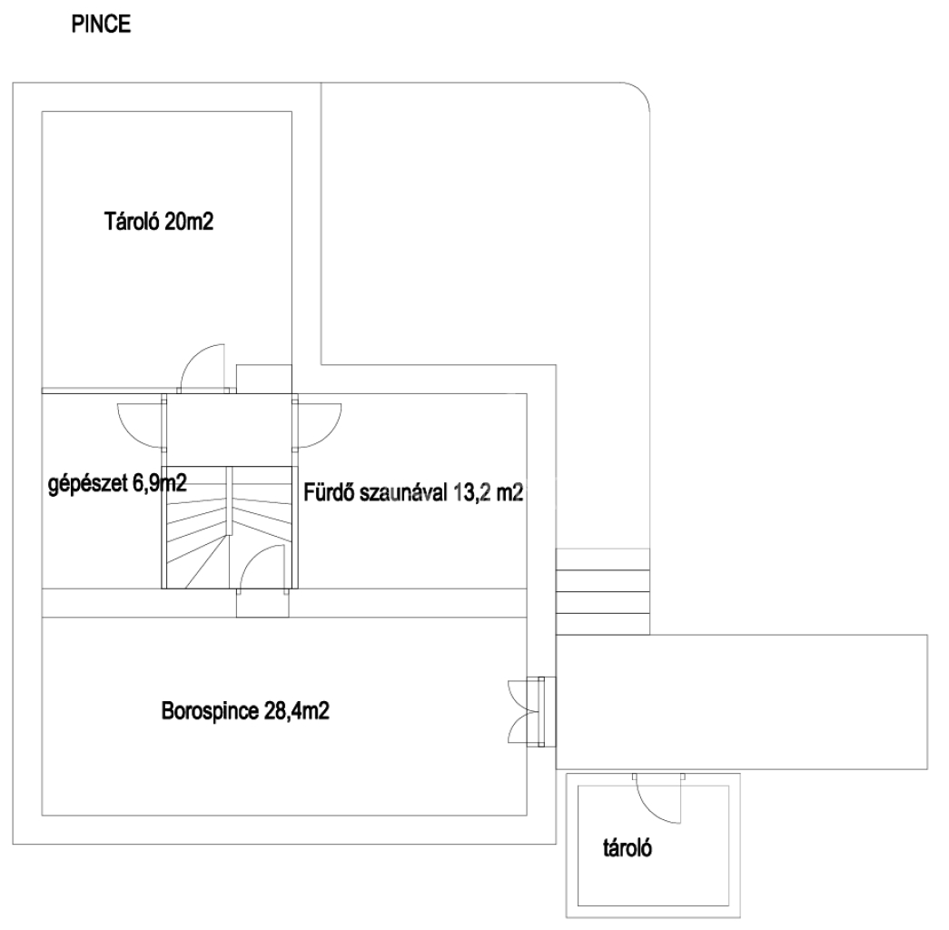 Teljes alápincézés: tárolóhelyiség, infraszaunás, padlófűtéses fürdőhelyiség, gépészeti helyiség