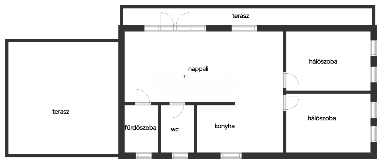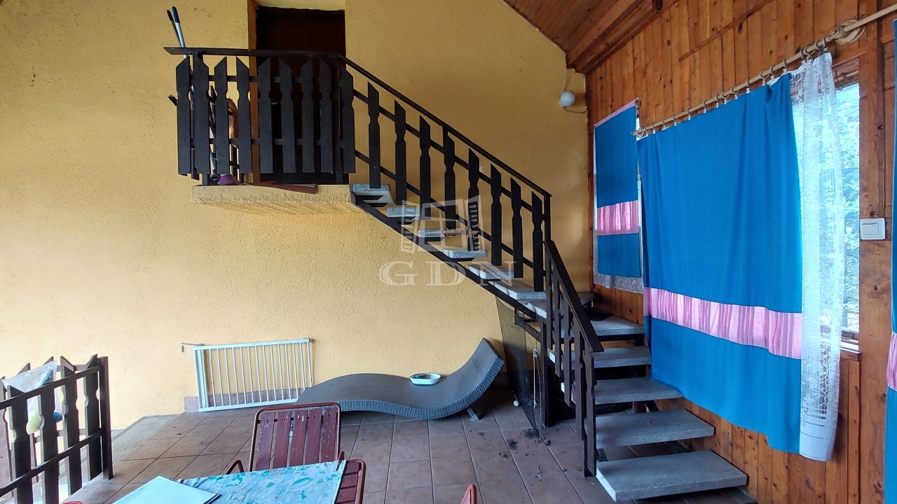 Az utcafront felé, előkertes kialakítással található a kb. 39 m²-es faház, amely szobából, hálóból, konyhafülkéből, fürdőszobából és közlekedőből áll. A főépületet és a faházat egy 18 m²-es fedett terasz köti össze, ami kiváló közösségi térként szolgálhat – akár családi, akár baráti összejövetelekhez.