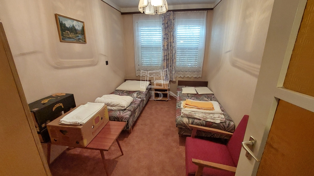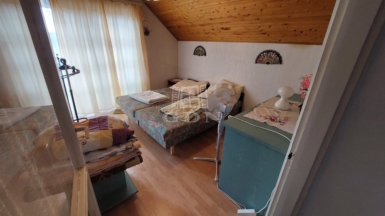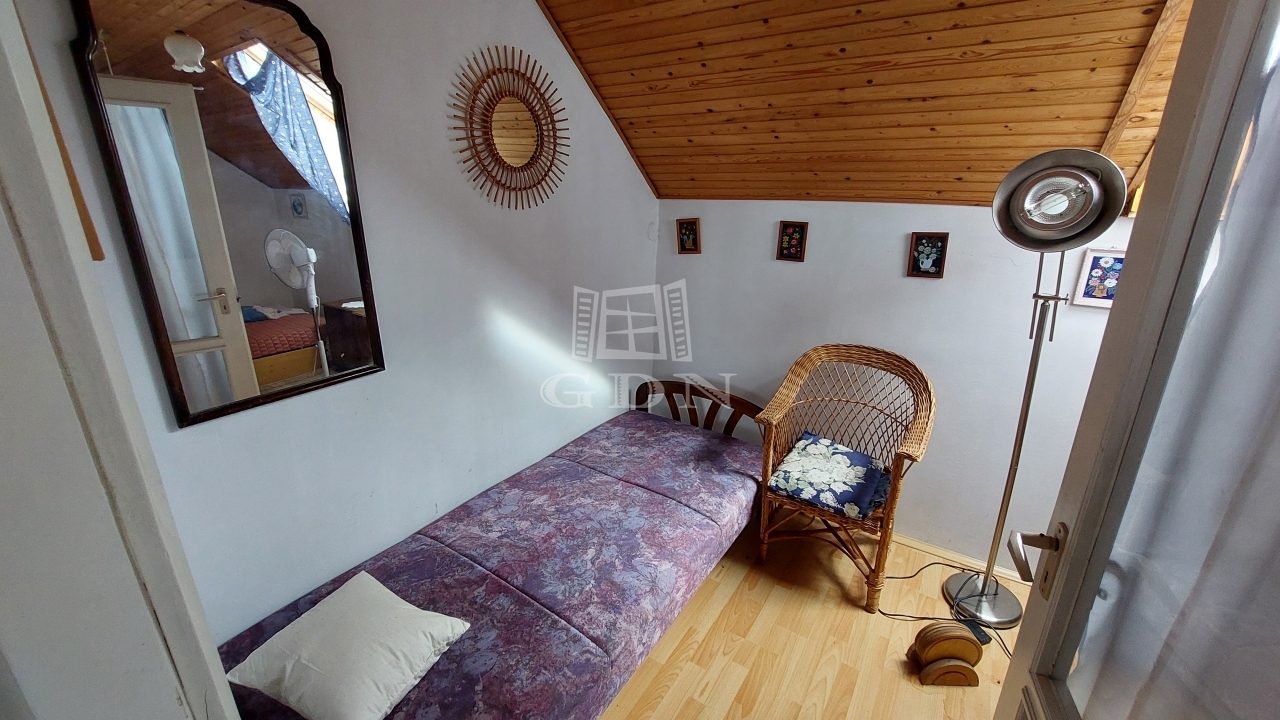 Az emelet további három szobát kínál, valamint előtér/közlekedőt, konyhát, kamrát, fürdőszobát, külön WC-t és egy 7 m²-es erkélyt. A fűtés gázkonvektorokkal megoldott.