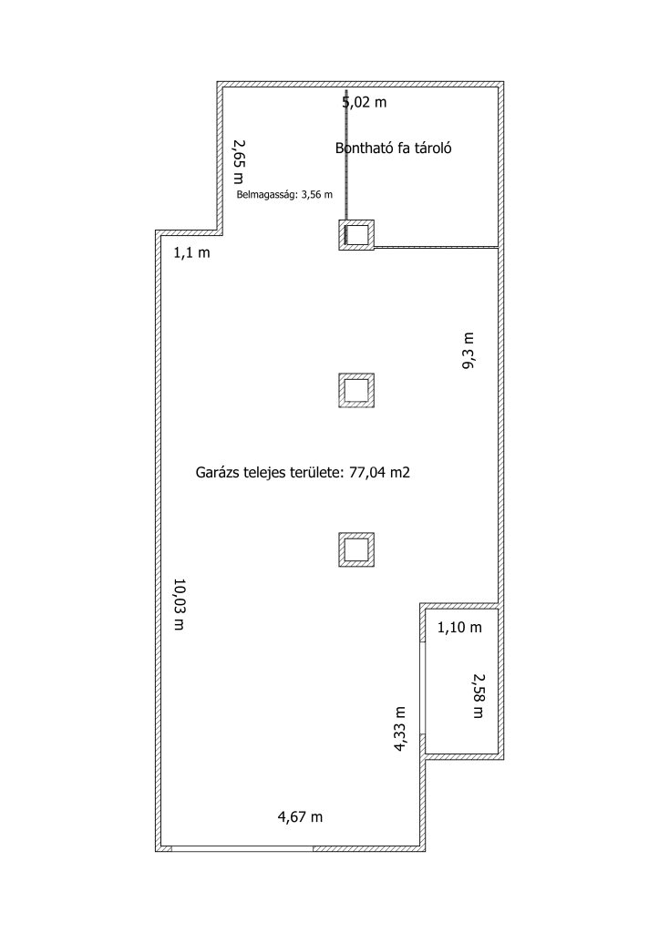 A garázs felújítandó állapotú, így új tulajdonosa saját igényei szerint alakíthatja ki. Méretéből adódóan több gépjármű tárolására (2 autó és 2 motor részére) is alkalmas, de kiváló lehet műhelynek, raktárnak vagy befektetési célra (kiadásra) is.