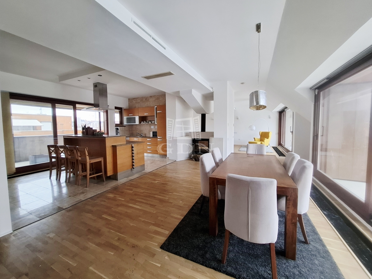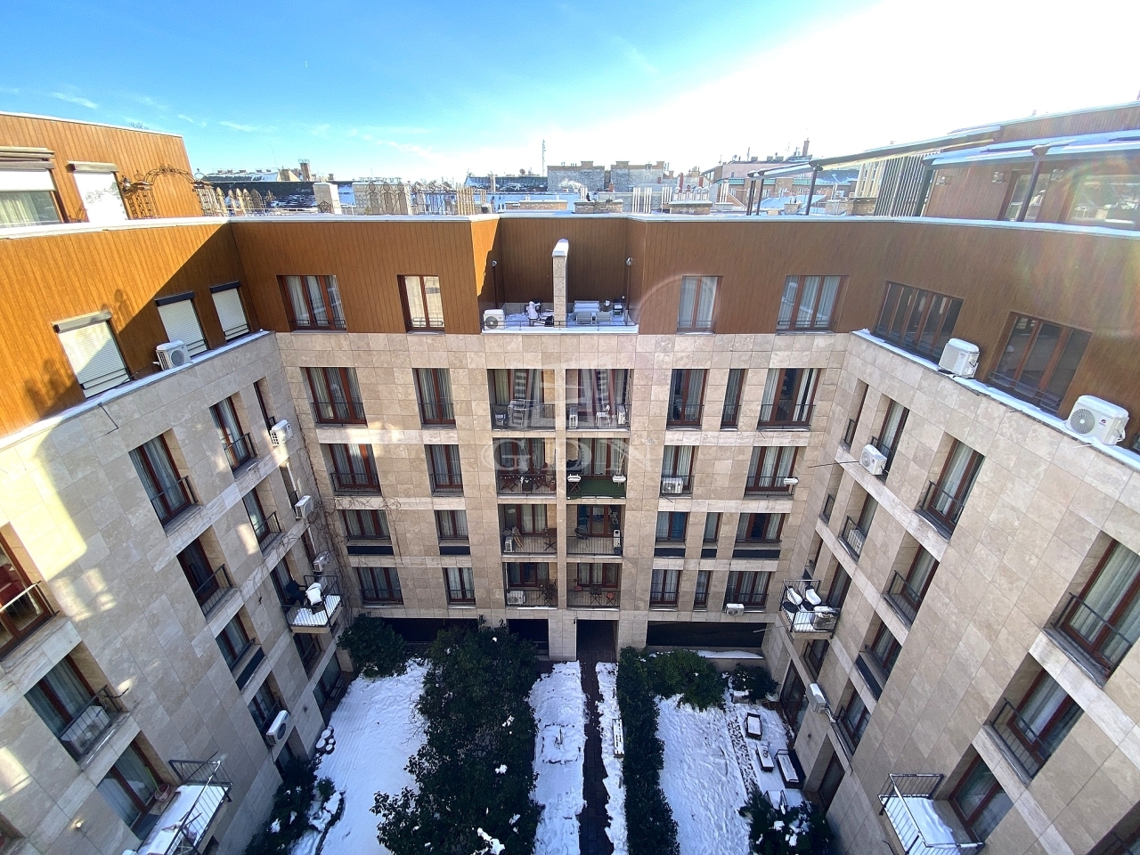VII. kerületben, Kazinczy utcában kínálunk eladásra egy 6. emeleti (legfelső szint), 188 m2 lakóterületű, 105 m2-es terasszal rendelkező penthouse lakást, ahonnan szép kilátás nyílik a városra.