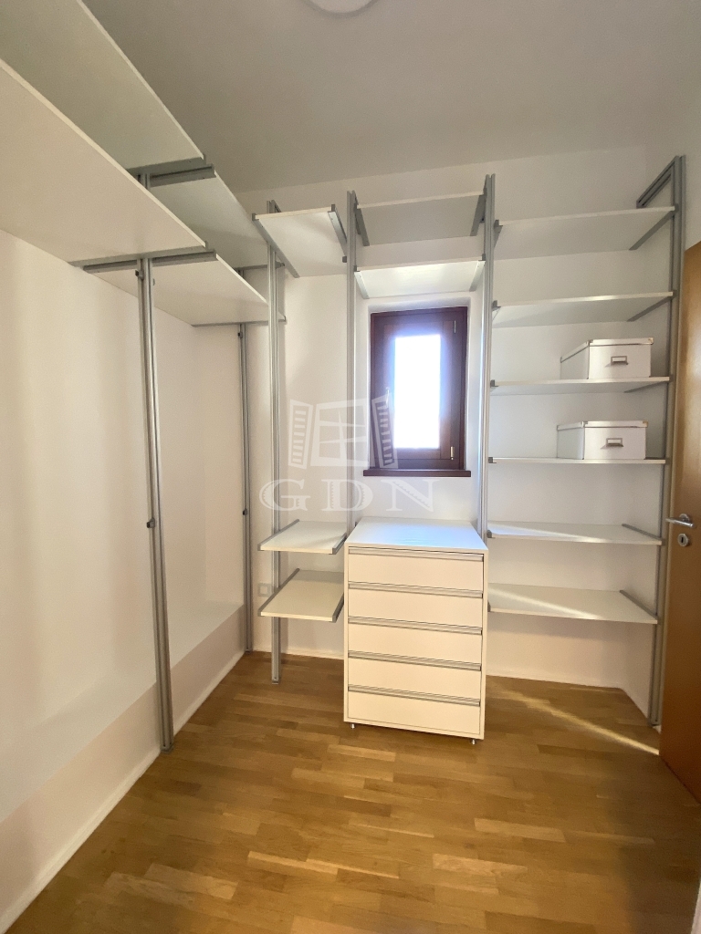 A lakás hatalmas, tágas terekkel rendelkezik, 2 nagy hálószoba, gardróbbal, saját fürdőszobákkal, beépített szekrényekkel.