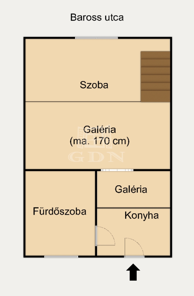 A lakás egy szobából áll, mely utcai kilátással rendelkezik.