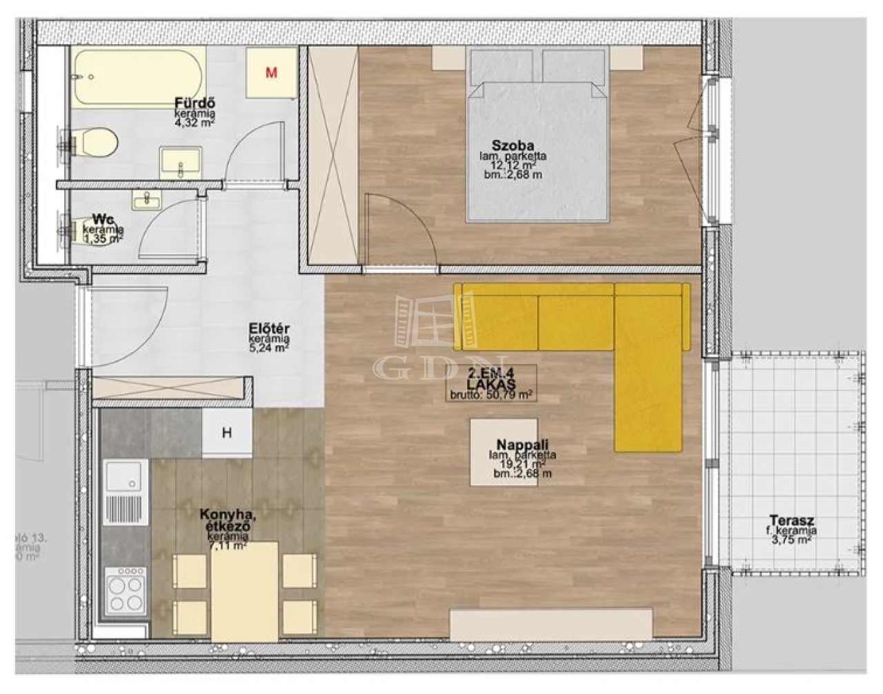 2. emelet – 50 m2 - 2 szoba – 4 m2 erkély – ELÉRHETŐ