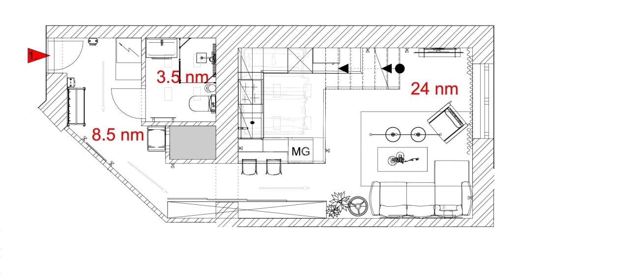 • 1. emelet, galériás kialakítás