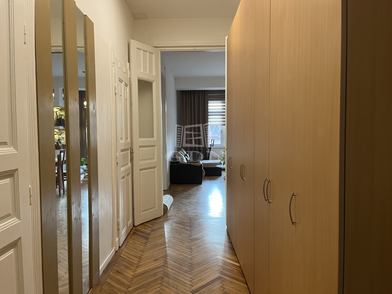 A lakás elrendezése tágas és praktikus, a nagy ablakoknak köszönhetően napfényes és kellemes hangulatú.