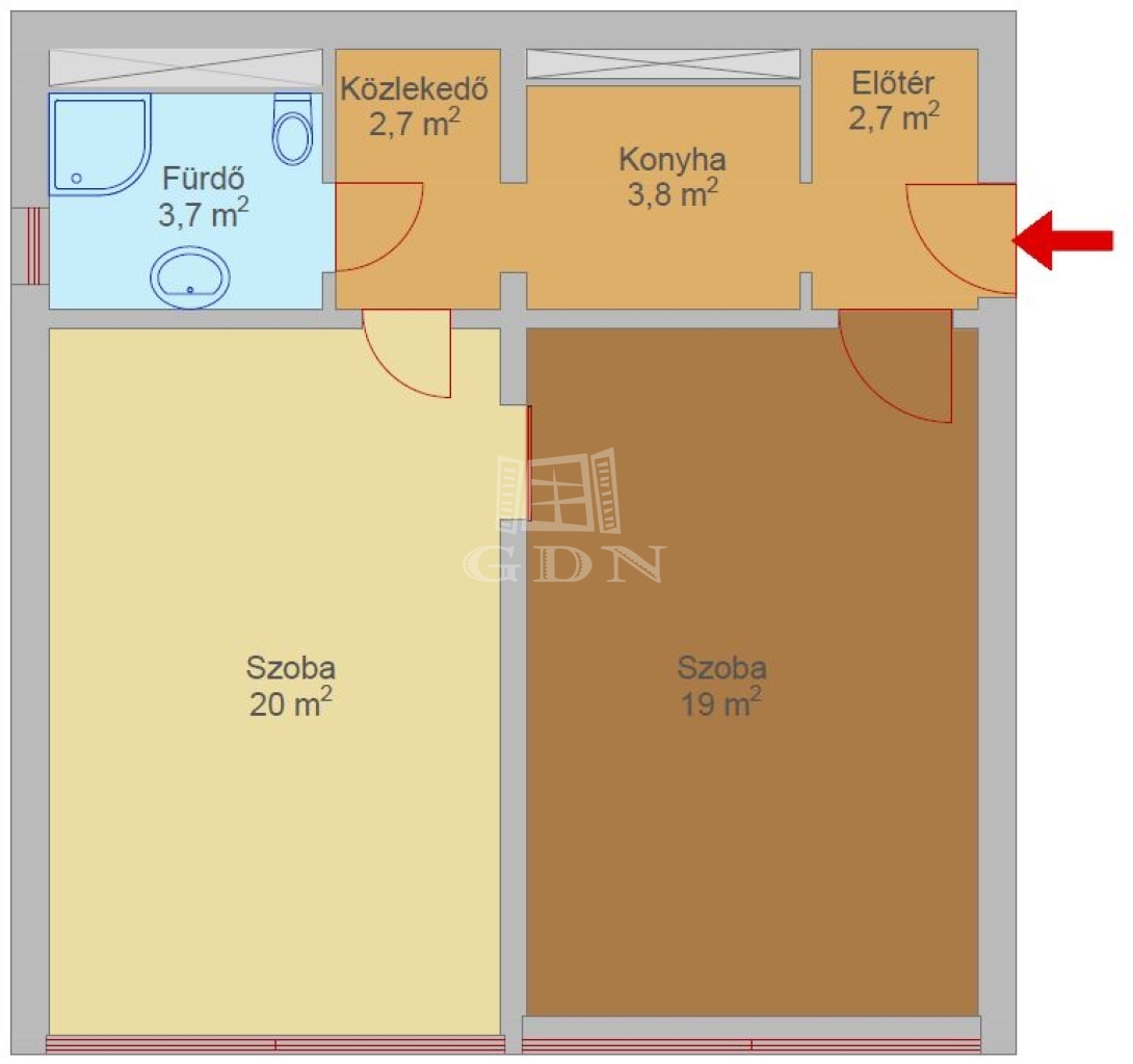 Két kényelmes méretű szoba biztosítja a lakók kényelmét.