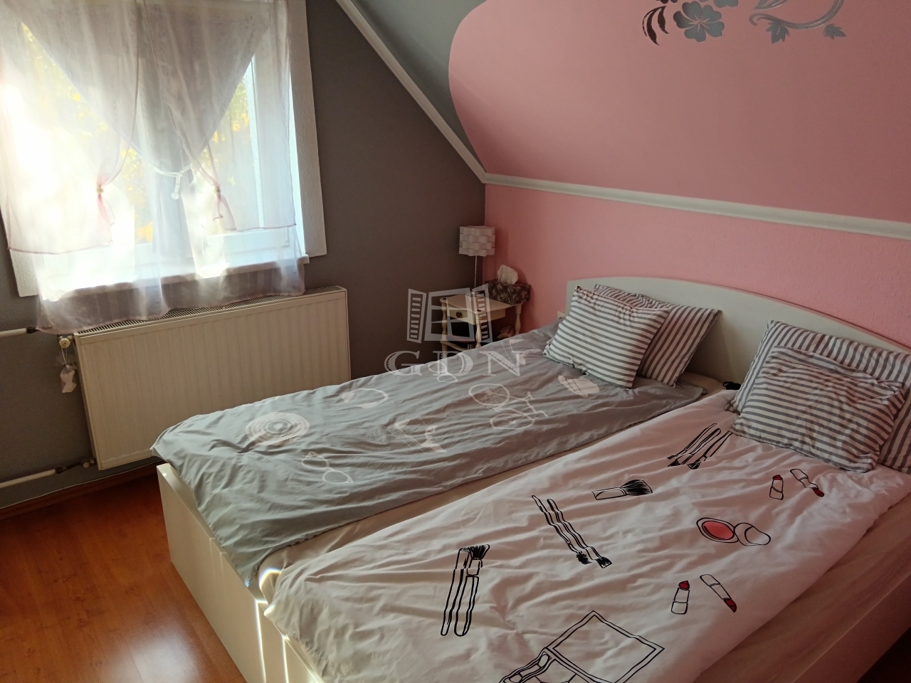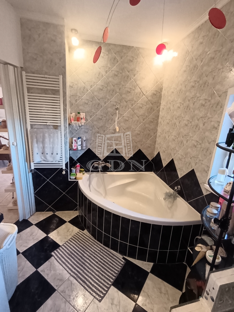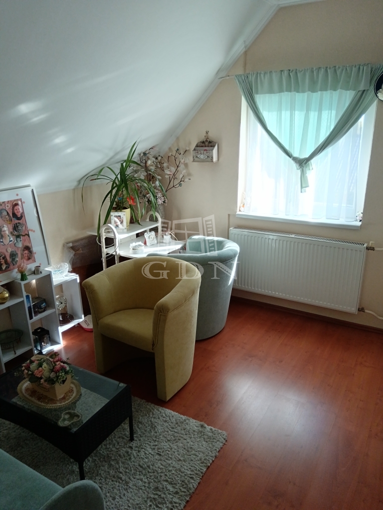 Az emeleten két tágas hálószoba, egy sarokkádas fürdőszoba, valamint egy világos nappali fogad.