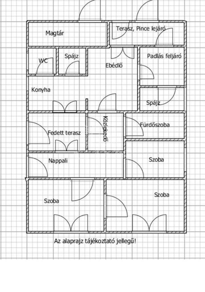 Az ingatlan beton alapon áll, vegyes falazatú, elrendezése praktikus és családbarát. Helyiségei: fedett terasz, folyosó, konyha, étkező, spájz, külön mosdó, fürdőszoba, nappali, egy szoba, valamint két utcafronti szoba.
