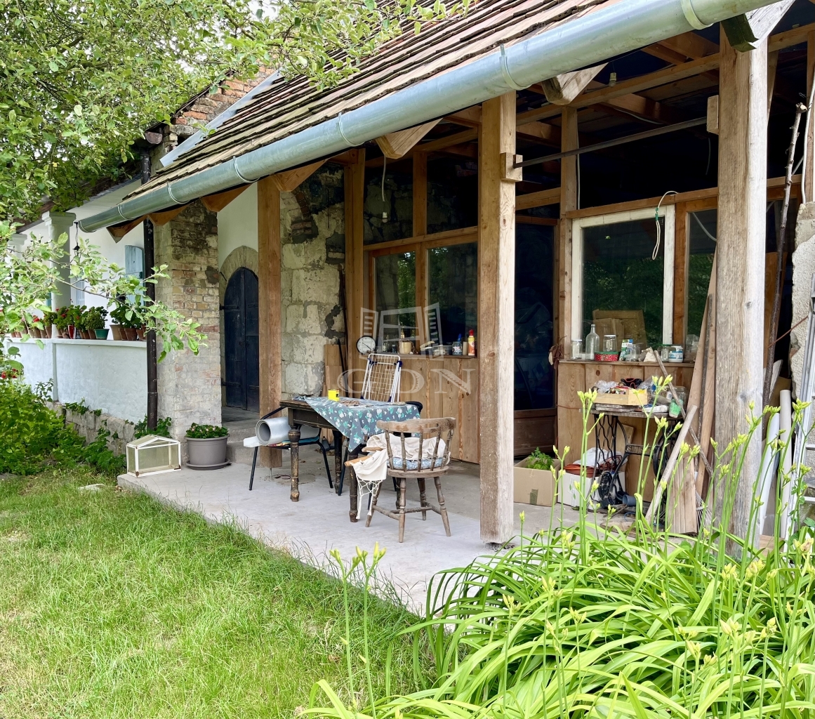 Eladó egy 100 éves, tornácos parasztház Gyúrón, nagy telekkel és gazdálkodásra alkalmas kerttel.