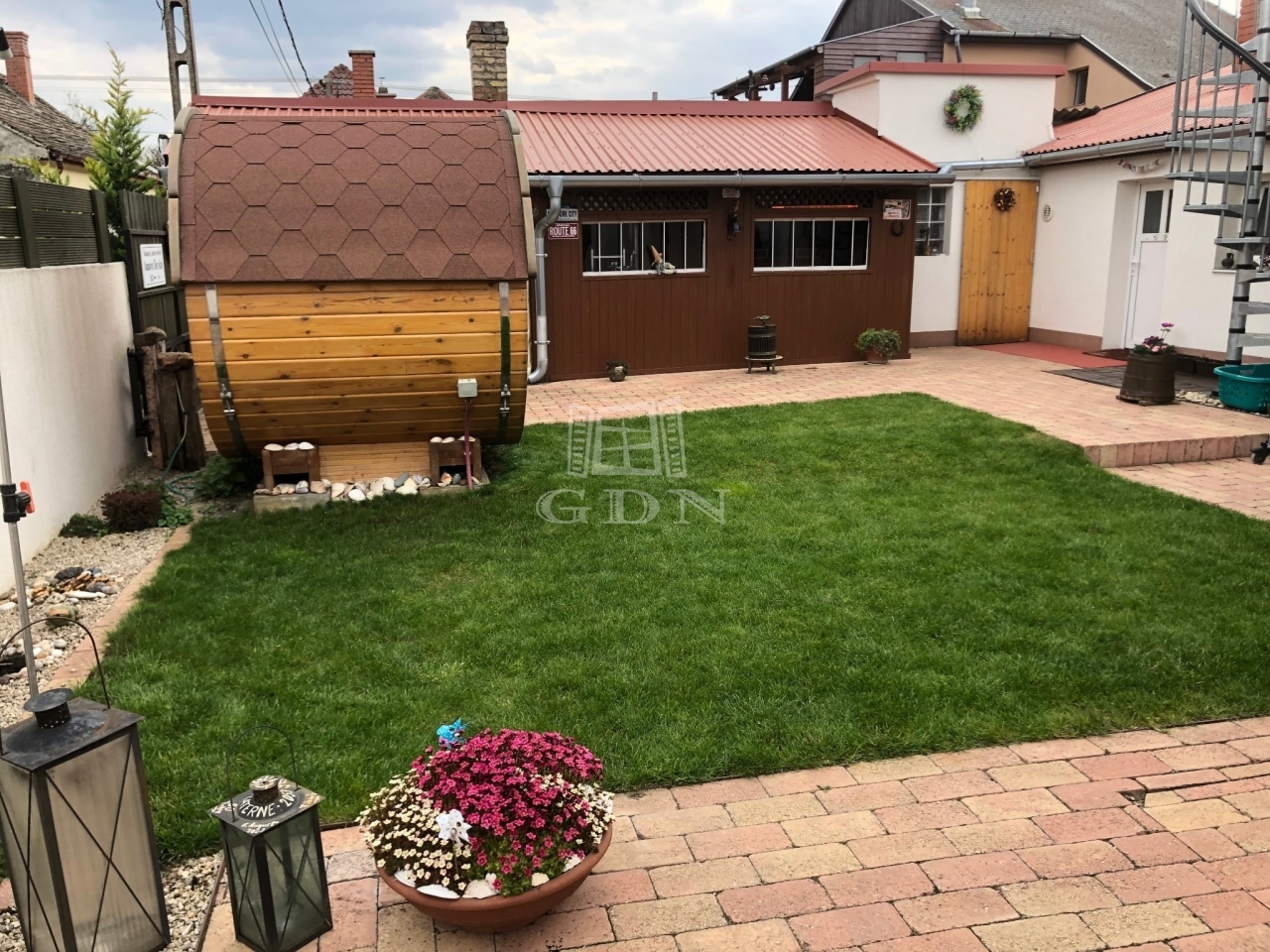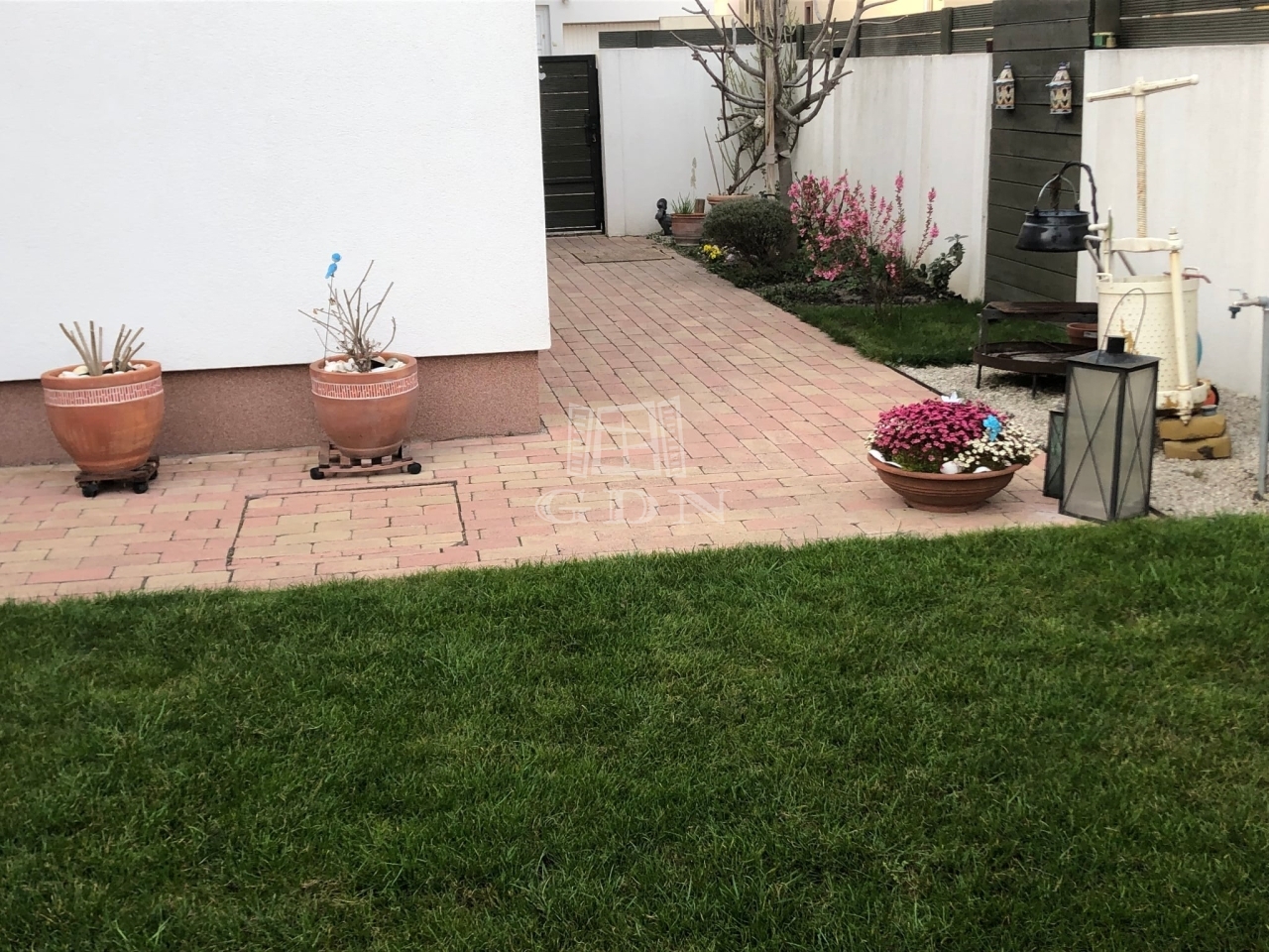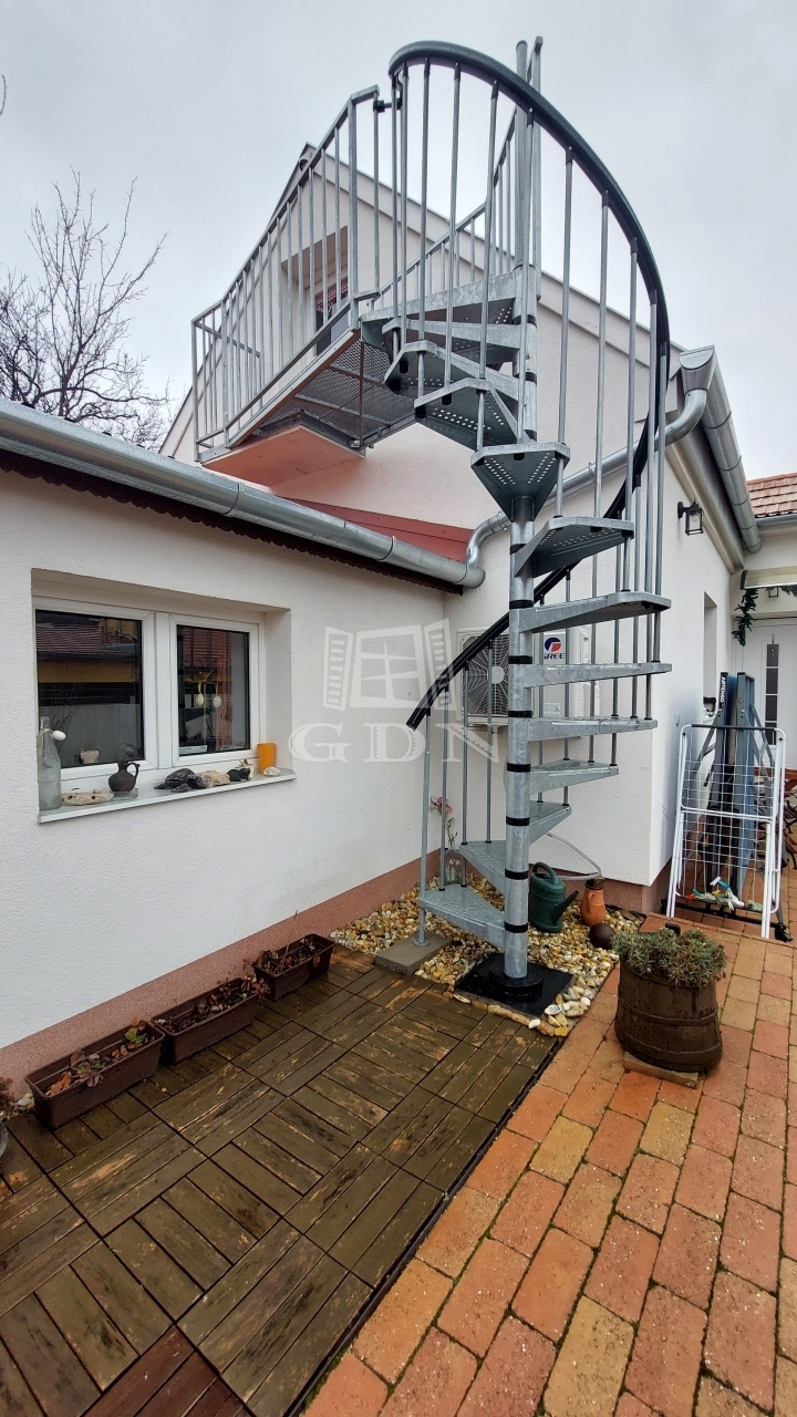 A gondozott kert nemcsak praktikus, hanem kifejezetten hangulatos: autóbeálló mellett egy kellemes kiülő is, valamint egy szinte új, kerti szauna is helyet kapott. A különálló, 14 m²-es vendéglakás saját fürdővel és teakonyhával rendelkezik, így ideális lehet önálló élettérként, idős szülő vagy kamasz gyermek részére, de akár irodának is.