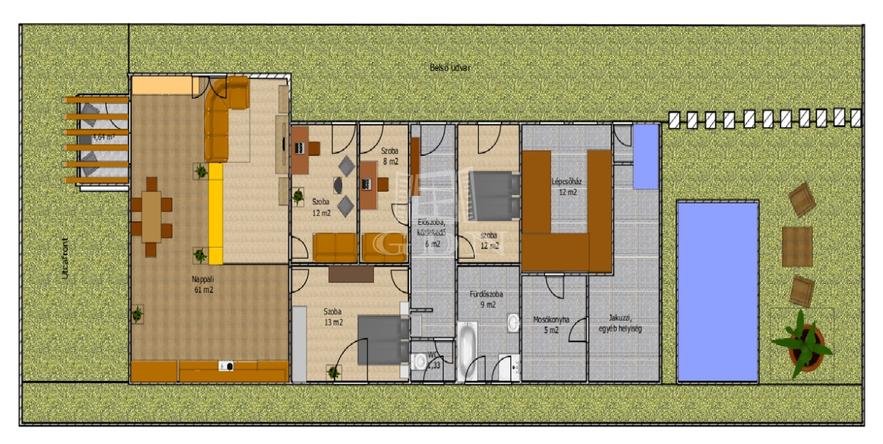 - pezsgőfürdős fűthető beltéri jakuzzi, homok és vízszűrővel,