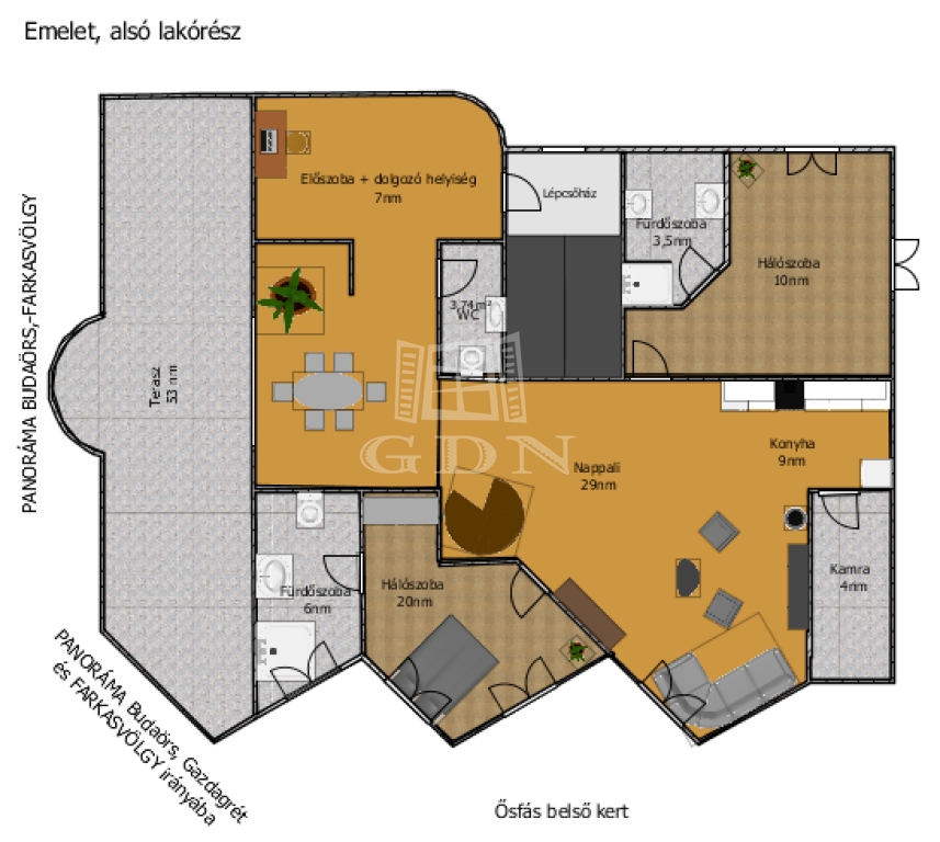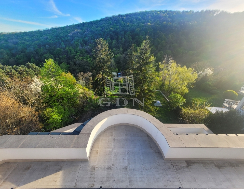 A luxus duplex (BELSŐ KÉTSZINTES + SZINTENKÉNT 1-1 TERASZ) élettér a Budai oldal kiemelt részén a Farkasvölgy-Csillebérc városrészek ölelésében a tájvédelmi terület mellett, csendes hegyvidéki környezetben helyezkedik el! A lakáshoz tartozó hatalmas méretű teraszról csodálatos panoráma nyílik a városra, valamint a Frank hegyre. A lakóhelyet körül ölelő végtelen nyugalom és csend egyedülálló élményt biztosít!