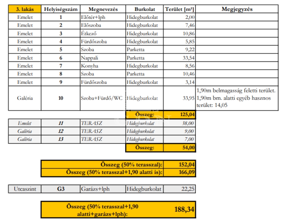 - saját lépcsőház rész: 6 m2 (a fotók között szerepeltetett helyiség listában található felsorolás az irányadó))
