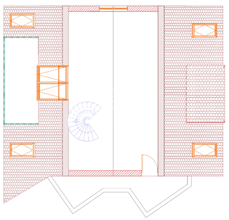 - tetőfedés: antracit színű betoncserép + PREFA rendszerű alumínium lemez bádogozás,