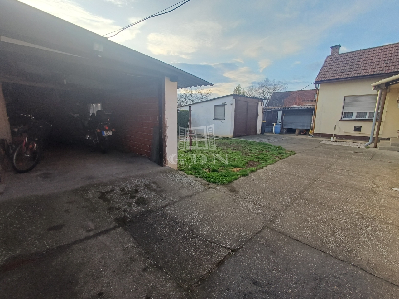 Az ingatlan egy 877 nm-es, rendezett telken helyezkedik el, ahol 2 garázs, pince, valamint egy 9 nm-es fedett terasz is megtalálható.