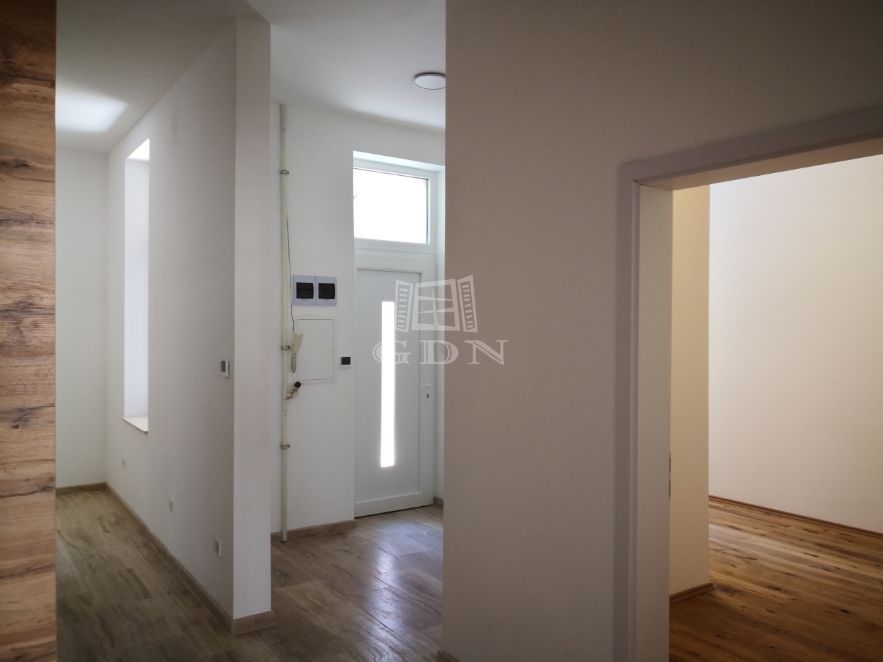 A 82 négyzetméteres 2. emeleti lakásban 2+1 félszoba található.
